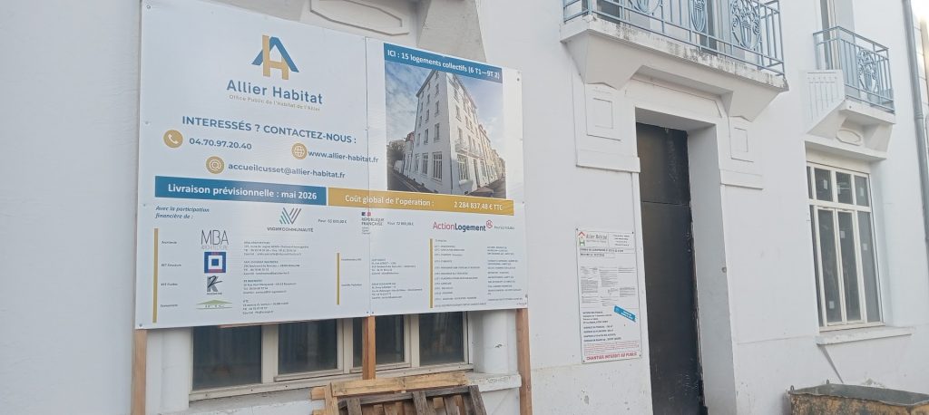Rénovation d’un immeuble de 15 logements, des studios et des 2 pièces. Le cout est de 2.2M€. La rénovation va revenir à 152.000€ en moyenne par logement. C’est largement au dessus du prix du marché pour un logement de ce type à Vichy.